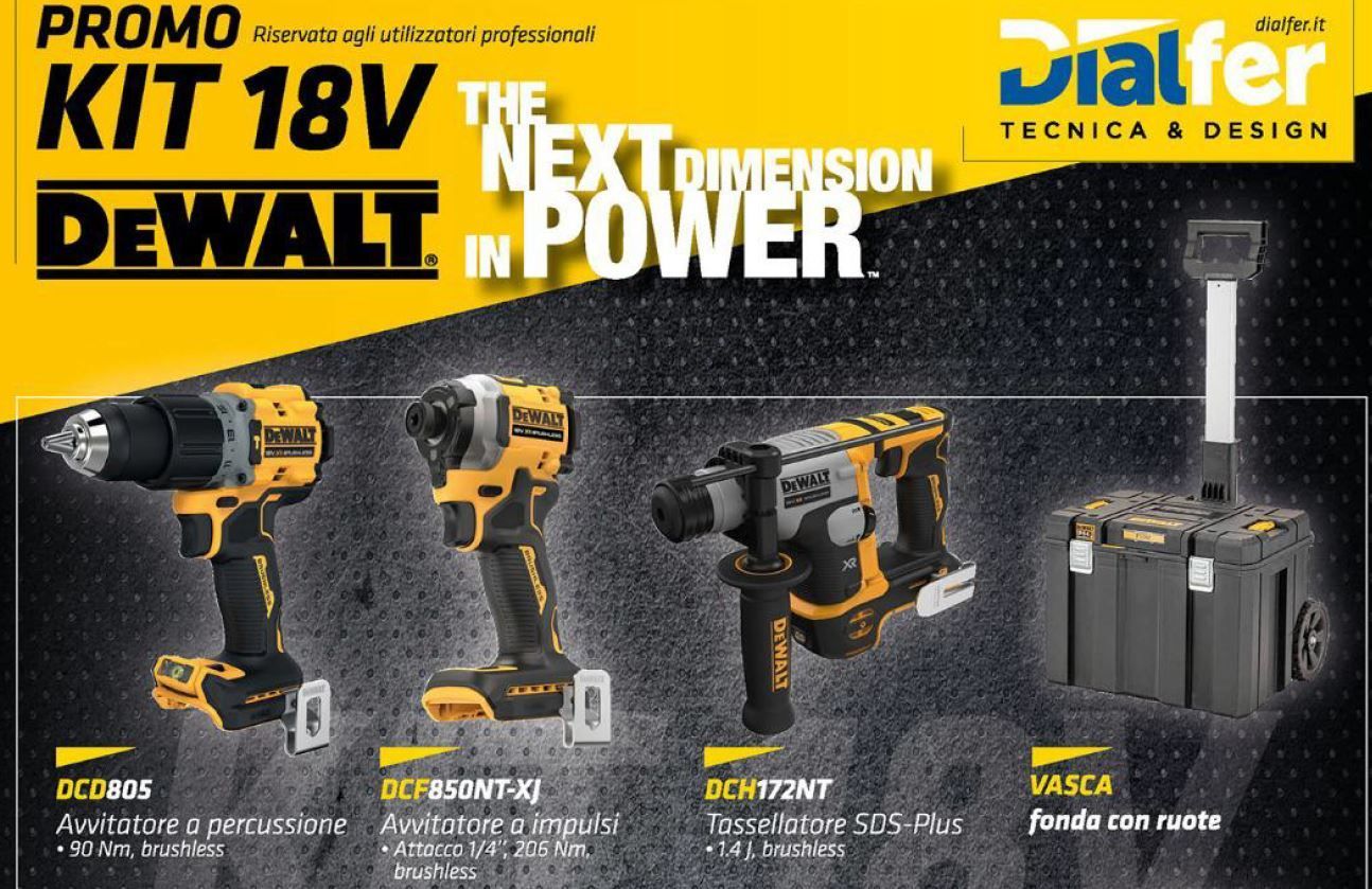 Offerta promozionale Kit Dewalt -10% sul prezzo IVa esclusa qui sopra